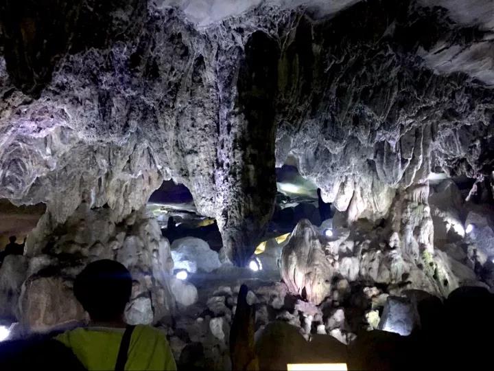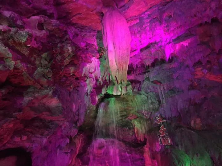 双龙洞景区三个大字雕刻在石壁上字雕刻在石壁上,洞口悬着的钟乳石一青一黄,像极了两个龙头,龙头在外洞,而龙身藏在内洞,所以叫“双龙洞”。内外洞之间有巨大的屏石相隔,只有狭窄的地下河相通,河长15米左右,宽三米多。我们进入内洞,只有屏息仰卧在小船中,逆水擦岩而过。